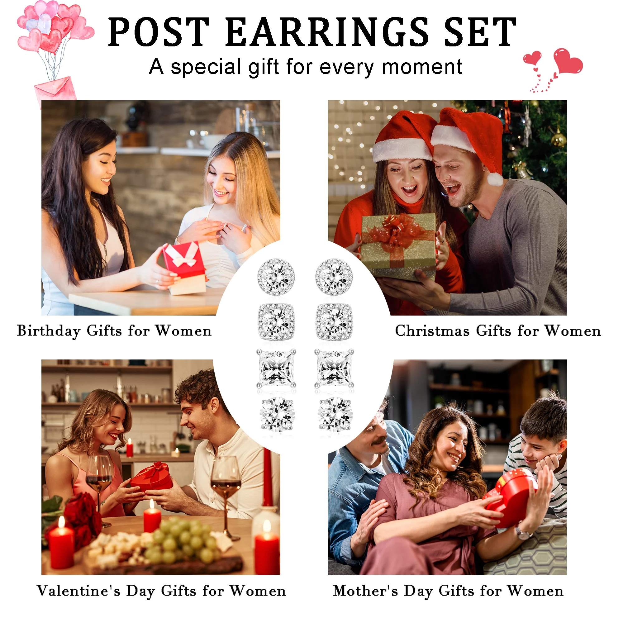 - Classic Design: These post stud earring sets feature a simple yet refined design, combining geometric elements with cubic zirconia, and come as a set of four pairs for individual or combined wear.