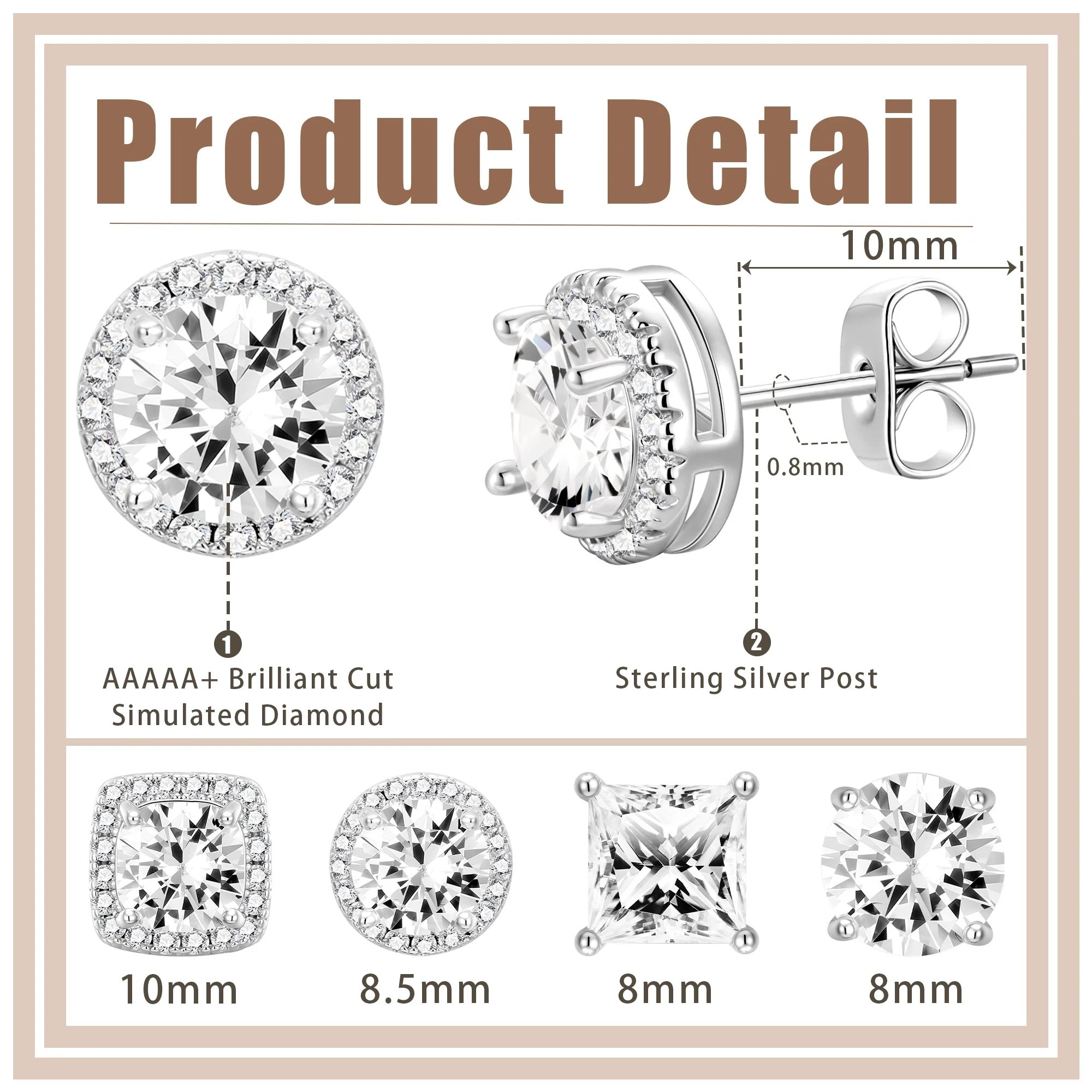 - Comfortable Size: Each stud earring measures 8 to 10mm (0.35 to 0.39 inches) and weighs approximately 2g per pair, featuring a push-back closure for easy wear.
